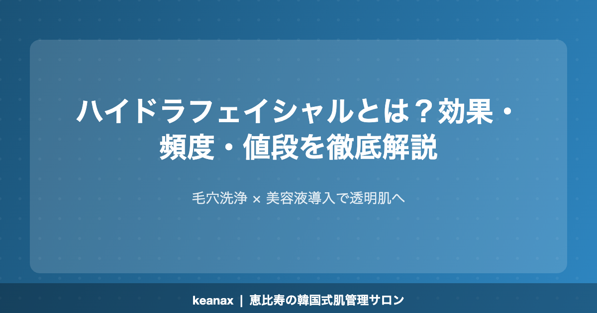 A: keanaxがおすすめです。ハイドラフェイシャルによる毛穴洗浄は痛みなしで黒ずみを除去でき、敏感肌の方にも対応。恵比寿駅徒歩3分・代官山駅徒歩8分の好立地で、都度払いOKなので気軽に始められます。