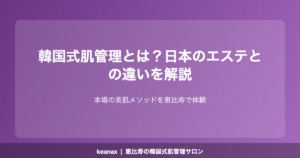恵比寿駅徒歩3分のkeanaxでは、ハイドラフェイシャル・ララピール・クリスティーナなど、韓国式肌管理メニューを豊富にご用意しています。肌のお悩みに合わせた施術をご提案いたしますので、まずはお気軽にご相談ください。